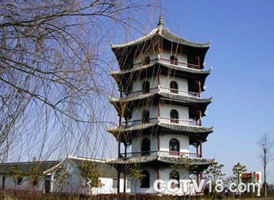 沿静海路向南,骑自行车不过半小时,便至江边,向西遥见一座宝塔式楼阁直插蓝天,那就是被誉为“海门第一塔”的五谷塔。登塔鸟瞰,江海风情园尽收眼底,但见山丘起伏,碧水环绕,阡陌纵横,林木葱茏。脚下,是一片传统农居,一水绿绕,拥抱粉墙黛瓦;几行柳荫,掩映竹篱茅舍。隔江相望,崇明浮于江海深处;极目西眺,海门港区飘渺于水云之间。登此塔,顿觉碧天如洗,风物潇洒,身心早已溶入陶渊明笔下的“平畴交远风,良苗亦怀新”的意境之中。