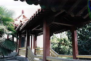 公园的西北面,有一个高耸的土堆,名曰土山,原是古沭城城角晾望台。1934年,土山上曾建一草亭,由时任县长的邓翔海手书“劝农亭”大字嵌于亭上,意在劝人勤于农事。“劝农亭”早已毁于兵燹,但土山尚存。现在,站在高高的土山上,极目整个公园,绿树彩花,环抱碧水,“霸王桥"、六角亭倒映入水,湖面上游舟荡漾,湖南儿童游乐场喧闹嬉戏,使游入神清气爽,怡怡而乐。
