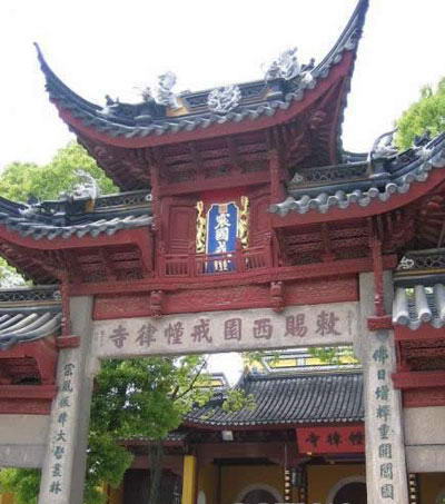西园戒幢律寺简称西园寺,坐落于苏州城西阊门外,东靠以古典园林闻名的留园,西邻幽寂的寒山古寺,北倚美丽的虎丘风景区,南临阊门运河,地理位置得天独厚。寺内古木幽深,梵宇重重,绿茵曲水,鸟语花香,经声梵乐中怡然使人步入了一个清净庄严的伽蓝圣地。