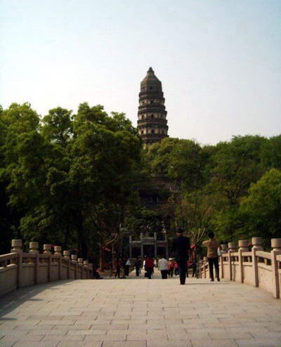 十八景首推山顶“云岩寺塔”,俗称虎丘塔,是驰名中外的宋代古塔。始建于五代后周显德六年(959年),落成于北宋建隆二年(961年)。塔七级八面,内外两层枋柱半拱,砖身木檐,是10世纪长江流域砖塔的代表作。由于宋代到清末曾遭到多次火灾,故顶部的木檐均遭毁坏,现塔身高47.5米。1956年在塔内发现大量文物,其中有越窑莲花石龟等罕见的艺术珍品。现在看到的虎丘塔已是座斜塔,由于地基的原因,塔身于400年前开始向西北方向倾斜。拒初步测量,塔顶部中心距塔中心垂直线已达2.34米,斜度为2.48度。