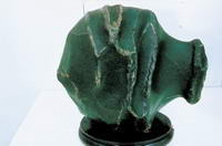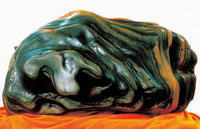 江河源奇石来自长江、黄河的源头——青海,造形逼真,质地细密,色彩庄重,以黑色、灰色、青色为主色调,并具有强烈的起伏变化,在三维空间中体现了点、线、面的结合、扭曲、变形,从而产生强烈的艺术效果,具有大自然的雕塑美。