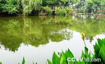 全园分中、东、西三部分。池居中部,四周环以假山、长廊、水榭、花厅、六角亭、通津桥。西部入园大门围墙仿苏苏州拙政园门口;北侧小花汀室内清明简洁,配以精工细刻的木格窗,可一览屋后小院内梅、竹、芭蕉、大竹和假山石构成的精致秀美的山景。长廊、水榭临池面作,隔岸北望,杨仰依依。西部为雕花厅,梁上雕花精致,玻璃长窗,厅高敞爽。厅前平台宽阔,亭后外露台濒临水池。