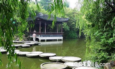 东部茶室,为园中之园,是游客休的佳地。夏日,依山傍水,斟一杯清茶品茗,望湖石水池,夏荷亭亭,遍园青绿;入秋,金风送爽,闻丹桂飘香,别有乐隐之趣。另外,园中多用细石铺路,整开雅致,细石小径曲曲弯弯。荷叶踏步和通津桥沟通东西两方。