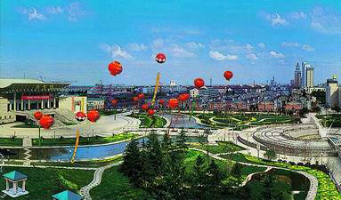 世纪广场位于市区人民中路,占地6万平方米。世纪广场中心为音乐喷泉和城市浮雕,周围是以春、夏、秋、冬四季为主师的开敞式景观庭园和休闲区。