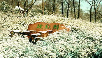 步人挂有王季鹤书“三月崧少步,五月红踯躅”的杜鹃园月洞门,迎面花木繁茂的土岗,恰如《红楼梦》大观园中障景的假山。顺着曲径折而往西,杜鹃园便露出了波光摇曳,绿树扶疏,亭榭错落,令人神往的一角。从水池边的汀步拾级而下,循着林壑优美、野趣盎然、由吴泽春书题的沁芳涧上行,在映红渡畔,一石危峙,悠然入画。穿过桥洞,涧道盘曲迂回,涧旁芳林依稀,左侧清泉一勺,终年不涸,朱有阶书题“醉春泉”。涧上为飞檐翘角的枕流亭,高石农书。亭下叠石为洞,亭后浓荫匝地,烘托出涧流不尽的意境。