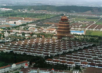 “中国第一村”华西村位于江阴市区东,华士镇西,面积0.96平方公里,人口1500多人,它是中外闻名的江南小村,江南农村田园旅游中心,其村有名的景点有80多处,华西金塔是它的标志性建筑,七级十七层,高98米。