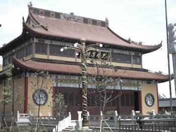 大雄宝殿为一层两阶、琉璃瓦屋面的仿古建筑,总投资近400万元,建筑面积500平方米,高19.8米。大雄宝殿的楹联由本寺方丈茗山法师亲自题写,殿内供奉佛教三大教主,即释迦牟尼佛、药师佛、阿弥陀佛,佛身高大,形象逼真,面容慈善,神态安祥,加上表面鎏金,主次分明,兰彩衬托,佛祖仙境降临,佛顶千龙朝拜,千只龙头四方齐集,设计精巧,层次分明,大吉祥图案更是鲜艳夺目,两旁诸天神形态各异,苏州手工刺绣的幢幡台幔,至高垂降而挂。整个殿内十分清静庄严,富有浓厚的佛教文化色彩。