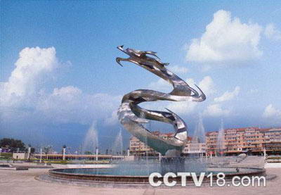广场西南的音乐台,可容纳1200名观众,专供群众文艺演出或团体活动之用。舞台的设计以圆为母题,直径16米,像珍珠似满月,有水池环绕四周,设一小桥与广场相连,这是运用了北宋时“鱼沼飞梁”的设计思路,表现了古典文化韵味。看台16级,一圈圈弧形看台汇聚成一首韵律感极强的乐曲。整个看台似一个河蚌,舞台似一颗珍珠,取“玉蚌献珠”之意,构图完美。与音乐台东西相对的,是具有现代风格的三层观光楼阁,它位于广场制高点,南可远眺引江水利枢纽风景,西可俯视广场全貌。每层观景处均为开敞式,为游人提供良好的观景空间,是一个绝佳的城市望点。