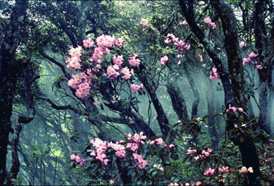 水口在五指峰左侧,距茨坪九公里。这里风光极美,尤以曲溪幽谷、碧潭峰峦和杜鹃林为胜。主要景点有水口河谷、金牛戏水、百叠泉、彩虹瀑(飞龙瀑)、锁龙潭、藏星岩、龙门等。