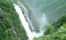 丰水时节,激流飞下,犹如万觚明珠凌空倾泻一般,景色十分壮观。