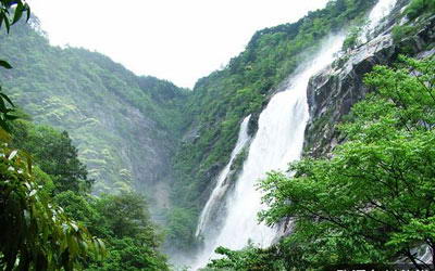 江西婺源被誉为“中国最美的乡村”。国家4A级旅游区----大鄣山卧龙谷风景区是一处纯自然、纯生态、纯原始的峡谷景区,是“最美乡村”的骄子。卧龙谷静卧在大鄣山脉,这里飞泉瀑流泄银吐玉、彩池幽潭碧绿清新、山峰岩石挺拔奇巧、生态民情原始古朴,活脱脱一幅天然泼墨山水画、一部雄浑跌宕的野性交响曲、一处都市人魂牵梦萦的乐土圣境、一处金庸笔下的人间美景、世外桃源。