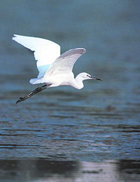 一大群野鸭子见到我们这些“不速之客”,飞快地钻进芦苇荡,有的则一头扎进水中不见了踪影。不远处,一块滩涂地上的十几只白鹭或独立水边觅食,或拍打着翅膀轻歌曼舞。