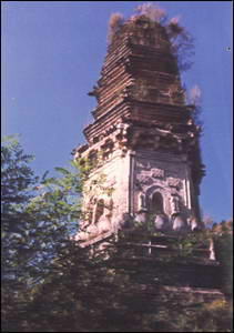 银塔位于海城市东南25.5公里接文乡西塔子 沟村北山上,建于金代,1953年进行修补。系省级文物保护单位。银塔高约20余米,造型秀美挺拔。塔为六面九级实心密檐砖塔,塔基须弥座每面长2.8米,有砖砌仿木围栏,栏板雕有花纹,还有鹭鹚、虎、荷叶、水草等花纹。