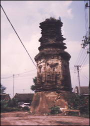 铁塔位于海城市东南20公里析木镇西北角,建于金代,系市级文物保护单位。整个塔造型较小,高约10余米,为六面七级实心密檐砖塔,塔基须弥座早已破坏,座上雕仰复莲瓣花纹。塔身六角有砖砌仿木圆形柱,有柱头,补间四铺作斗拱,每面有砖雕立佛一尊,高约1.5米,上有宝盖。