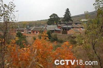 天王殿面阔三间,进深一间,前后施廊,供四大天王。天王殿兼作三门,也写作山门,因寺院多居山林而称之。前面便是石砌院墙,墙外大沟深10余米,受地形所限,将寺门开在偏西一侧,这是与其他寺院不同之处。从三间歇山式的四方殿(也称罗汉殿)后面拾级而上,是第二道平台,大经堂及左右配殿建于此。