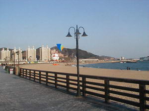 星海湾人工浴场是我国目前最大的人工海水浴场。位于星海湾国际商务中心区的南部海岸,有3个小浴场组成。海滩全长约2000米。整个沙滩都是用从北戴河运进的优质沙铺垫的,厚达3米,共有45000平方米。弧形海岸两头的防波堤使湾内风平浪静。
