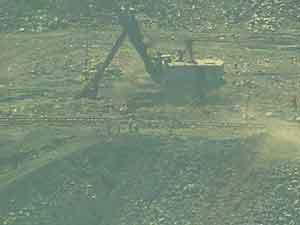 海州露天矿距市中心3公里处。该矿东西长4公里,南北宽2公里,现垂深250米,总面积30平方公里。站在该矿调度大平台上,远眺医巫闾山,山势逶迤,绿色葱葱,宛若一条巨龙盘亘于露天矿南缘。若天气晴朗,俯瞰剥采现场,机车轰轰而过,尤如儿童玩具火车穿梭不止;大型电镐上下飞舞,滚滚原煤如飞爆而泻。月光皎洁之夜,海州露天矿更是别有一番滋味,串串灯光层层叠叠,机车驶过若隐若现,仿佛一个巨大的光环笼罩着神秘的矿山。