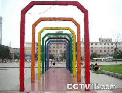 (2)中部文化广场区。面积5000平方米,地面采用天然花岗岩铺装,镶嵌了铜质宝鉴,花岗岩钻石图案,钢质通透七彩门,花岗岩北斗七星石。有丰富的文化品味和较高的科技含量。