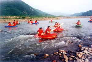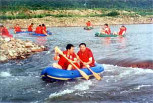 九龙河漂流项目目前已投资600万元。漂流河段全长5公里,两侧青山耸翠,风光无限。经过改造的河面最宽处达150米,备有橡皮筏200条,日接待能力可达3000人。整个漂流过程有多处急流,皮筏顺流而下,水花四溅,十分刺激,又有开阔平缓的戏水区,供游人打水仗、戏水,找回往昔的童趣,其乐无穷。
