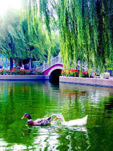 公园占地面积19.2万平方米,园内栽种松、柏、杨、柳、京桃等各种树木百余种、万余株。绿树丛中,园路交错;沿途小桥流水、假山亭阁、红花碧茵,景色宜人。园中的沉池喷泉是著名景点,池中建有跌落式喷水塔和天真活泼的儿童戏水雕塑。公园西南部辟有儿童乐园,从前只有秋千、翘板、滑梯等,后来陆续增建了电动木马、宇宙飞船、弹跳小城堡、碰碰车、空中转椅、电子游艺厅等现代设施,是孩子们纵情嬉戏的天地。1956年以来,这里还经常举办花卉、彩灯、冰雕等展览,终年游人不绝。1986年11月9日,园内又增建了孙中山铜像,供游人瞻仰。