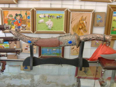 里面主要是卖旅游纪念品的,价钱不贵的皮质包,小羊皮手套,藏刀,蒙古族特色的首饰,也有卖特色食品的店