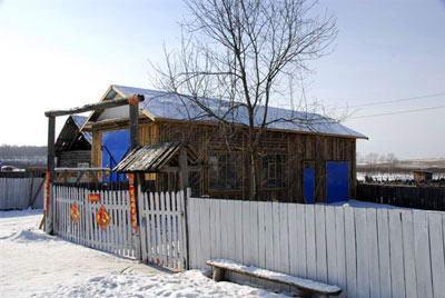 从海拉尔出发,沿海吉公路北行,穿林海、越大岭,九曲金带将我们引到祖国版图的鸡冠之顶,与俄罗斯一河之隔的边陲小镇--室韦。我们穿行于异域风情的的室韦镇上,由沙石铺就路还在不停的修,街两旁有邮电局、电影院、商店、电视转播台,小镇的建筑多是独立的“木刻楞”,白桦木圈成的院落,院前院后码着整齐的桦木拌子。据说,小镇现居住着1800多口人,其中华俄后裔占63%。