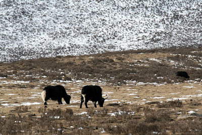 车过山巅,群峰显峥嵘,方才还是雾海茫茫,此刻云散雾尽,真是一山分阴阳,南北各不一。只见峰岭连绵,崔巍起伏,群山逶迤。牧场青青,芳草吐艳,野花争妍。星泉点点,细流涓涓;山兔慌窜,野鸡舞旋,云雀鸣叫,苍鹰翱翔,真是生态自然,造化之玄。帐篷围栏,袅袅炊烟,牛羊成片,散散慢慢,牧童传笛,老翁诵经,牧女挥鞭,无忧人生世外桃园。