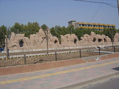 群雕位于陕西西安市区西部,这组群雕长55.9米,宽3米,刻画和表达一队来往于丝路中途的中外混合的骆驼商旅。在这队商旅中,包括3个唐人、3个波斯人、14匹骆驼、3条狗、2匹马。石雕材质选用陕西关山的花岗岩石料,石质古朴典雅,线条苍劲有力。