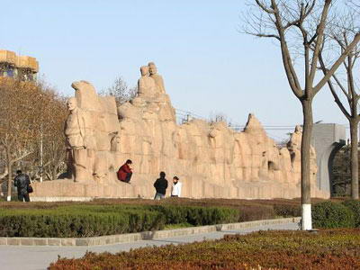 为了纪念丝绸之路开创2100周年,1988年西安美术学院在花圃中雕塑了“丝绸之路群雕”。