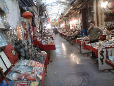 回民街在西安,绝对是一个标志性的地点。横纵四条街道,基本上提供着西安大部分的美食,来西安旅游的朋友,也不会放过这样的一个街道,既满足了自己的食欲又满足了旅游的乐趣。这里很奇怪,紧挨着钟楼闹市的西大街上的建筑非常低矮陈旧,没有一家大型的购物场所,甚至还有很多临时建筑。而且一过西安最繁华的钟鼓楼广场,迎面而来的西大街马上变得萧条多了。广济街是一条有着一个高高的牌楼的街道,走进去,里面却很繁华--这是一种迥异于东大街和钟鼓楼广场的繁华,或者,说它很热闹会更合适一些。据说回民街过去是商业繁华之街,商贾云集,风光无两,街上名店鳞次栉比,名产驰誉全国。据说有108家粮行,有宰牛、宰鸭、宰驴的数10位,无论是不是赶集,都热闹非凡。现在,矮矮的民居屋顶,如蜘蛛网一样的电线,四通八达纵横交错,却又那么触手可及:触到的是木板里遗留的草根气质,但那种人声鼎沸的鼎盛场面,早就无法企及。这条街的历史也已经很久了,据说,原来国外的使节和来长安做生意的商家们聚居在这里,不断地繁衍生息,现在的坊上人大都是这些古老移民的后裔。他们用自己的宗教形成了高度的凝聚力,在汉人占主流的社会中,顽强地坚持了自己特有的文化生活圈子,他们的血液中还保留着精明商人和贵族的遗传因子,一直到了今天。