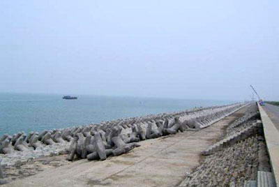 从垦利县垦东办事处向东10公里,便是镇海锁浪、保护油田勘探开发的孤东围海大堤——当地人称为“海上长城”。孤东海堤始建于1985年,南起黄河入海口孤东南环路东段,北至西北端滩头,全长57公里,又称为“百里海堤”。大堤底宽38米,顶宽10米,高5米,青石护坡,柏油封顶,游人可以乘车在海堤上纵情驰聘。远远望去,犹如一条横卧海边沐浴的巨龙,气势雄伟,坚固异常,这条巨龙将海水向后逼退了数公里,共围海造陆500平方公里,使百余万亩土地不受海潮侵蚀,也使浅海采油变成为陆地采油,保护了孤东油田。登上堤坝,向里看,堤内草原辽阔,钻塔林立,至夜幕降临,钻塔灯光闪闪烁烁,深邃迷离,可谓“火树银花不夜天”,向外看,堤外海天相连,帆影点点,景色美不胜收。
