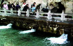 黑虎泉泉群在济南旧城的东南部,有泉水15处,除黑虎泉外,著名的还有琵琶泉、白石泉、玛瑙泉、九女泉、五莲泉等。