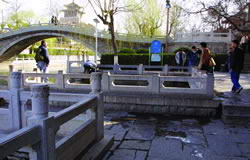 五莲泉在琵琶泉西侧,池底泉眼甚多,较大者有五个,水泡成簇,于水面绽开,似五朵盛开的莲花,故名。泉南侧河岸上建有五莲轩,由亭、台、廊、榭组成,景观十分别致。