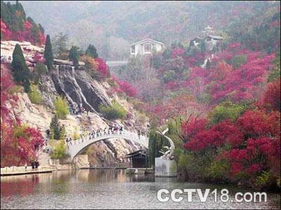 红叶谷景区位于济南市南部山区锦绣川水库南三公里处。景区内绿荫浓郁,群山苍翠,碧波荡漾,景色秀美。春来山花烂漫,夏至凉爽宜人,深秋红叶流丹,冬季红梅傲雪,特别是金秋十月,千余亩的野生黄栌红叶满山,形成了独具特色的自然景观,成为江北最大的红叶观赏区,红叶谷也因此而得名。成为江北最大的红叶观赏区。