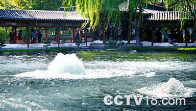 百脉泉位于章丘明水镇。泉池呈长方形,长26米,宽14.5米,一座古色古香的小石拱桥横贯中间,将泉池分为南北两半。百脉泉池底泉眼很多,水泡串串,奔突向上,似滚动的珍珠,与济南市区内珍珠泉十分相似。《章丘县志》中载:“其源直上涌出,百脉沸腾,状若贯珠,历落可数,故名。”百脉泉久负盛名,历代文人多有题咏。宋代曾巩在《齐州二堂记》中称:“西则趵突为魁,东则百脉为冠。”明代戏曲家李开先《游百脉泉》诗云:“水劲无过济,脉泉更著名。不霜清见底,漱石寂无声。颗颗如珠碎,yunyun比镜平。不能容小艇,但可濯长缨。”百脉泉水质极好,味美甘甜,且水温常年保持在18℃左右。