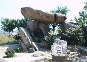 在天蒙旅游区莲花山南部有一山坡,以石击之,则发出"咚咚"的鼓声,即使在一里路外的马路上,仍清晰可闻。这就是"天鼓"。天鼓东南20米处,有一巨石悬空,呈东北西南方向,长6.5米,宽5米,石重约百吨,人以一指顶其南端可上下摇动,故名"指动石"。