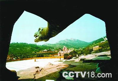 当您乘车沿崂山路东行至兜钱口时,一幅自然撷秀图呈现在眼前,在群山怀抱的幽谷中,以“山”字造型的张拉网架托起“雨林谷”三个大字,寓意着天人合一、物我合一、景情合一的自然融合:东西对峙的山坡上,奇花异果挂满枝头;怪石嶙峋的熊山、虬曲多姿的根抱石、树皮木板制做的房屋,都是采用拟木塑石的手法,形成了真假难分的景观;当您站在古生物化石岩壁前,仿佛看到这里的每一个起伏都是一个有灵气的生命,它们从远古走来,带着永久不能改变的庄严;雄踞岩层之上那巨大的剑龙仿佛向游人叙述它们称霸地球1.6亿年的辉煌。