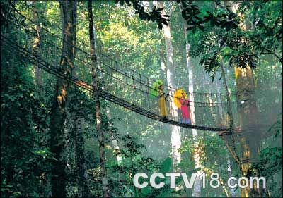 热带雨林馆虽称不上之大之最,但她别具一格的创意真实地体现了人与自然、人与动物和睦共处的氛围却让人折服。全框架错层帆式造型,高约30米内分三层的雨林馆在国内确属少见。雨林馆内的温度长年保持在20。C ~28。C,相对湿度60%~80%。怪石嶙峋中溪泉飞流直下,参差不齐的热带植物按突显层、林冠层、矮层和林地层充满其间,使您在攀藤植物和芭蕉丛中感受虫鸣虎啸、鸟语花香。更使您惊讶不已的是凶猛的东北虎在人们的驯化下温柔可爱,人与猛虎同舞。这里是岛城旅游的新亮点,四季旅游的好去处。