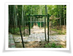 风景区内绿化面积在80%以上,自然生长着毛竹、斑竹、月竹、紫竹、钢竹、金镶玉竹、等竹子品种,同时辟有专门的竹子品种展示区域,既是一个天然氧吧,又是一个天然植物园。充分体现了具有江南风情的竹文化特色,园内建有竹楼、竹亭、竹廊及少数民族村寨等景区,开辟了配套的餐饮、住宿、旅游购物等服务设施,少数民族艺术团体常年为游客表演民族歌舞,特别设有游客参与性强的竹竿舞、竹林乐园等娱乐项目。