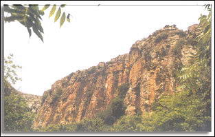 黄石悬崖是大自然的造化,因这里黄崖万例,似刀削斧劈,直指苍穹,有瞬间倾倒之势,所以故名“黄石悬崖”。崖下古木参天,古刹隐藏其中,清泉四季不烟,风景十分优美。黄石悬崖下面原建筑面积300多平方米的“总神殿”,据地方志记载,200年前殿宇宏伟,主殿内塑有神像72尊,每年古历四月初庙会,前来总神殿的善男信女络绎不绝。人们把塑好的神像请来供奉在总神殿内。香火盛时,总神殿内供奉神像 总数增至800余尊,日日香火缭绕,钟磐齐鸣,可惜现在已成残垣断壁。