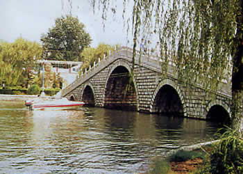 荆河公园位于荆河之滨,建于1985年,占地225亩,其中水面85亩,是滕州市最大的公共游乐场所。公园建设以传统古典园林风格为基调,高疏低培,围水成湖,集沙以成岛,着意装点,妙造自然,重峦叠翠,水绕楼园。留恋山水之间,怡情亭榭之中,于空灵中得雅致,在疏淡中见秀逸。使人可得泉林之乐,可遂向禽之志,清淡脱俗。