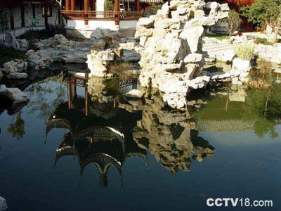 走下望海阁,沿石径东行折南,过“接秀桥”,即到古华园的“园中园”——“秋水园”,这里四面环水,而南北、西三面都有桥相通。·园中有水池、太湖石,周有曲廊迂回。池北有“超然堂”,堂中匾额上由我国著名古园林泰斗陈从周教授手书堂名,所谓“超然”便是超乎喧嚣的社会环境,乃至超脱红尘,是·一个修身养性、读书学习、怡然自得的一方净地。池北有“听流亭”,池西有“涵碧轩”,轩北有拱形“香花桥”,池南有“伴月亭”。古华园里的太湖石并不算多,但仅有的几块却能,体现太湖石“瘦、透、漏、皱”的特点,所谓“瘦”就是石头要“苗条”.,“透”就是石头中间要有洞穴,“漏”指石头纹里能渗水,“皱”就是石面要有年岁的皱纹。
