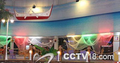 海钓场室内面积达3000多平方米,其中烧烤与餐厅之面积达1200平方米,八百平米垂钓场地分 A和B两个垂钓池,场地内提供鱼杆、鱼饵及专业技术人员指导垂钓。
