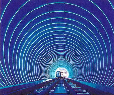 我国第一条越江人行观光隧道--上海外滩观光隧道工程。外滩观光隧道将首次设计采用地下冷却塔,以保持浦西外滩和浦东滨江大道的环境协调、完整。外滩观光隧道通过声、光、电、激光等高科技手段,在直径仅6.76米、长646.7米的圆隧道内制作五光十色的动态景观。虽然过江时间只有5分钟,但游客将经过八个景色不同、内涵各异的景区。