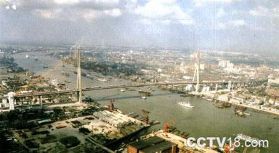杨浦大桥于1993年10月竣工通车,她与南浦大桥遥相呼应,是内环线高架连接浦东与浦西的过江枢纽,总长为7654米,跨径为602米,主桥长1172米,犹如一道横跨浦江的彩虹在世界同类型斜拉桥中雄居第一。