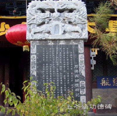 五爷庙,即五台山万佛阁,虽然不大,占地仅2000平方米,殿楼堂舍也只有20多间,但因为内有五爷庙而名播远近香客盈门。万佛阁创建于明代,现在建筑多为清代重修后的遗存。主建筑有三,一是文殊殿,二是五龙王殿,三是古戏台。
