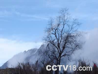 九顶山上有万亩野生杜鹃林,每到春末夏初的花开时节,林中常常弥漫着淡淡的薄雾,枝头上那一朵朵含香带露的杜鹃花,看上去仿佛是轻纱掩面脉脉含情的少女,不胜妩媚与娇羞。在这儿才发现“雾里看花”原来也别有一番情趣和韵昧。这儿的海拔仅2000多米,当秋色渐浓、霜染层林时,举目望去,漫山遍野赤橙黄绿,五彩缤纷,如孔雀开屏一样绚丽,又象是一幅浓墨重彩的画屏。走进五彩林,那更是一步一景,一树一景,让人目不暇接。有一棵独树,人称夫妻树,是一大一小两棵不同种类的树长在了一起,你中有我,我中有你,相拥相依不能分离。它们就像一对默契而又浪漫的情侣,永远不知疲倦地在跳着一支生命的圆舞曲,从枝繁叶茂到黄叶飘零……
