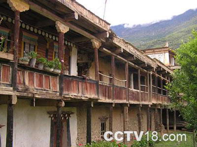 这些藏式木楼外形美观,二层以上开大窗,设阳台。房屋内外雕镂精美,墙上、壁板上用五色颜料绘有各种花卉、鸟兽图案,门上贴狮、虎等动物图画,色彩鲜艳,花纹吉祥。