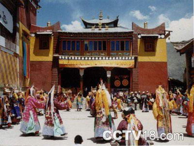 庙内供奉着观音菩萨、莲花生大师、文殊菩萨等100多尊神像,庙中还有各种价值昂贵金银塔,并藏有大量经卷。庙壁上挂满笔调考究的唐卡,内外墙壁上有色彩鲜艳的壁画,壁画尽雕刻佛教传略,具有浓郁的佛教文化风格。该庙第年农历正月十五跳神,庙会称“跳布扎”。僧人们带上面具,淋漓至地演绎人世间的因果报应,叫人们改邪向善。