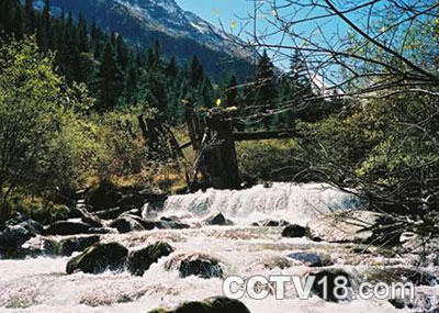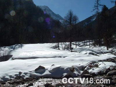 在雪山腰上是菇郁苍翠的原始森林,高耸挺拔的各种树木层层叠叠,遮天蔽白,形态各异,更有獐子、马熊、马鸡、羚羊等珍稀的飞禽走兽栖息其间,穿行于林间,使人顿生"鸟鸣绿渊而不见情影,松涛阵阵而不知风至"之感。